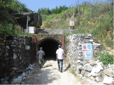 該礦采用斜坡道開拓,井下采用裝載機裝礦,自卸汽車運輸方式,無提升設備。人員、材料、設備經斜坡道到達井下采場工作面。井下主要運輸巷道采用三心拱,單車道4~4.5m寬×4~4.5m高,雙車道7.6m寬×5.7m高,通風行人天井斷面1.5m寬×2.6m長。符合設計要求,能夠滿足礦山行人、運輸、通風和安全設施、設備的安裝、維修及施工需要。該礦山礦巖穩定,目前井下一般不需要支護,只有硐口部分采用混凝土砌拱支護。井巷有專人維修,礦山井巷掘進符合要求。礦山已有道路與外部連接,礦山運輸道路為簡易路面,路面平均寬4.5m,每隔200~300m設一寬6.5m的雙車道,最小轉彎半徑15m,最大縱坡9%;其坡度、路面寬度、轉彎曲率半徑等符合規范要求。