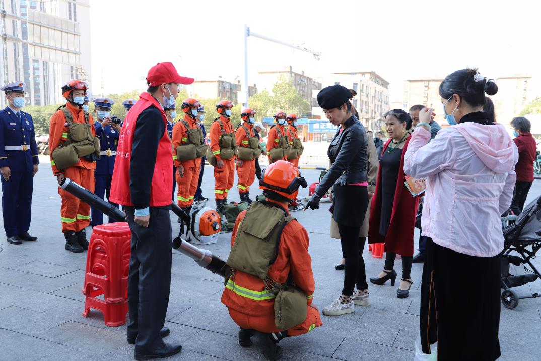 駐贛森林消防大隊十二中隊介紹了風力滅火機、水泵等撲火裝備的工作原理、操作步驟,并現場演練機具操作。通過志愿服務活動,促進森林防滅火知識宣傳進社區,增強廣大市民的森林防火意識,形成人人參與森林防火的濃厚氛圍,共同守護好綠色家園,以“忠誠保安全”錚錚誓言迎接黨的二十大勝利召開。